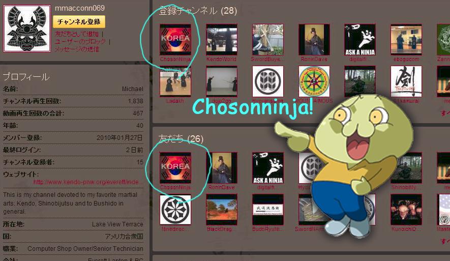 チョ人を必死に擁護してる外人さんなんだがプロフィールを見ると典型的なサムライワナビーしかもニンジャーでもある。