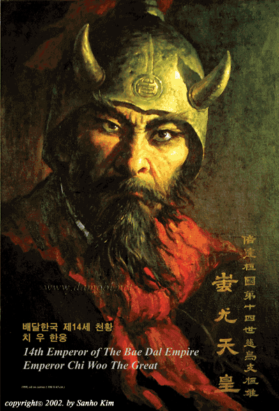 Koreans always say how they are smart but they blindly believe fantasic history they read or saw on novels and movies. Here is Chiyou from a Korean Hwanpa book "Portraits of Hwanin" Why they want Chiyou to be Korean? Because he's a popular character in video games? |